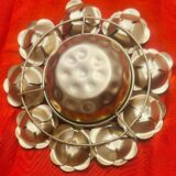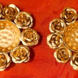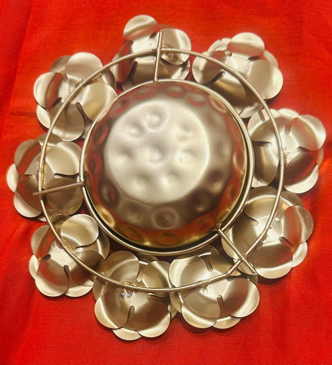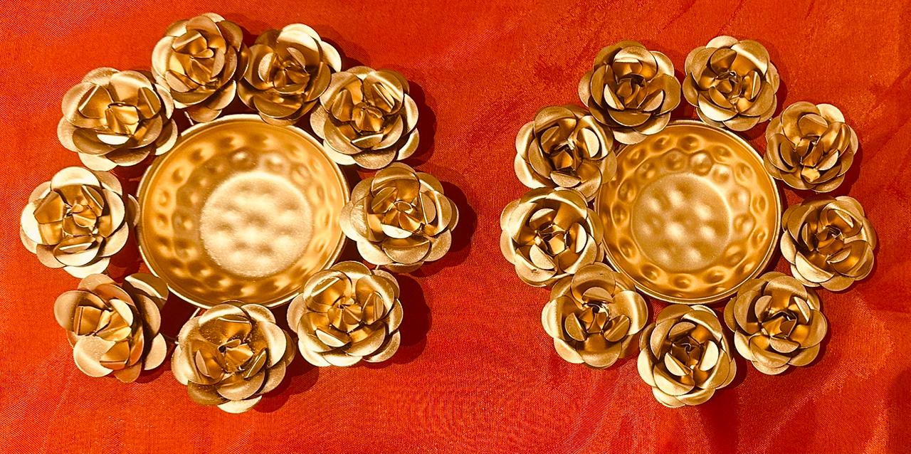 A beautifully crafted brass urli, designed with an intricate floral border that adds elegance and charm, Set of 2. The Rose Urli is a charming and beautiful decorative accessory designed to enhance the ambiance of any space. This piece features a traditional shallow bowl (Urli) encircled by detailed, layered Rose carvings, giving the whole piece a delicate, artistic floral mandala effect. It is typically crafted from polished metal (often brass or brass-coated aluminum) with a bright golden finish. Ideal for placing at the main entrance, in a living room, or on a center table, simply fill the bowl with water and float fresh flower petals or small T-light candles to create a serene and inviting focal point, especially during festivals like Diwali. An ideal pick for festive décor, wedding gifting, or return gifts, this piece blends tradition with timeless beauty.